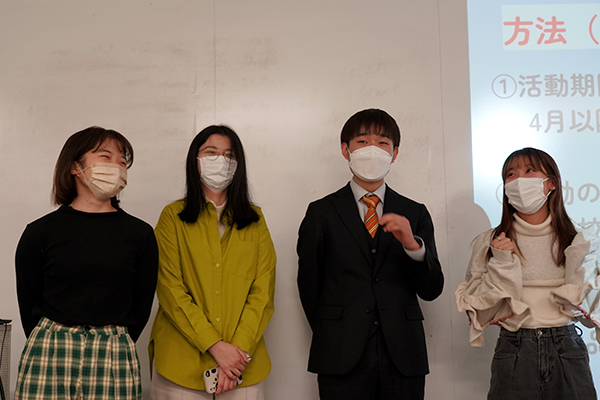 最後に、キャリア支援センター長でもあり、本プロジェクトに参加しているゼミ学生たちの指導教員でもある吉永崇史教授は「これまでの提案とは違って、ここから先、何かを実現しようとすると必ずリスクが伴う」と発言。今回の提案から出たアイデアを実現まで進めようとすることで、ここにいる全員が時間を割いて、様々なリスクを背負った上で、動かなくてはいけないことを理解してほしい、だからこそ、やるならば本気でぶつかってほしいと伝えました。そして、「ここから先の苦労は大変だろうけど、ぜひ皆さんにはリスクを取って成長する機会として捉えてほしい」と締めくくりました。