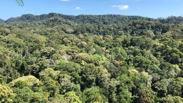 本研究では、一斉開花を含む熱帯樹木の植物季節を長期的に観測しているランビルヒルズ国立公園(図1)において、2019年に生じた一斉開花現象を対象に、林冠クレーン周辺の樹木の目視観測やタイムラプスカメラによる定点撮影に基づいた地上真値情報と、PlanetScope衛星により観測された分光データを照合させることにより、衛星観測データによる一斉開花現象の広域的な検出の可能性を調査しました。