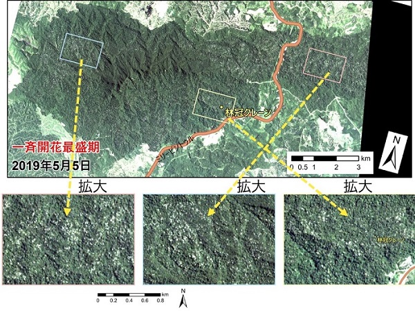 国立研究開発法人海洋研究開発機構(理事長 大和 裕幸、以下「JAMSTEC」という)は、米国ハワイ大学マノア校、宮崎大学、チューリッヒ大学、横浜市立大学、マレーシア国サラワク森林局、高知大学との国際共同研究チームで、光学センサーが搭載された高頻度高解像度衛星PlanetScope (以下、「PlanetScope衛星」という)により観測された分光データを用いて、東南アジア熱帯域特有の開花現象「一斉開花」を広域的にとらえることに世界で初めて成功しました。
