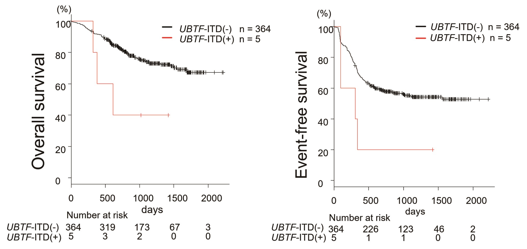 -図2.UBTF-ITDの有無による生存率の比較