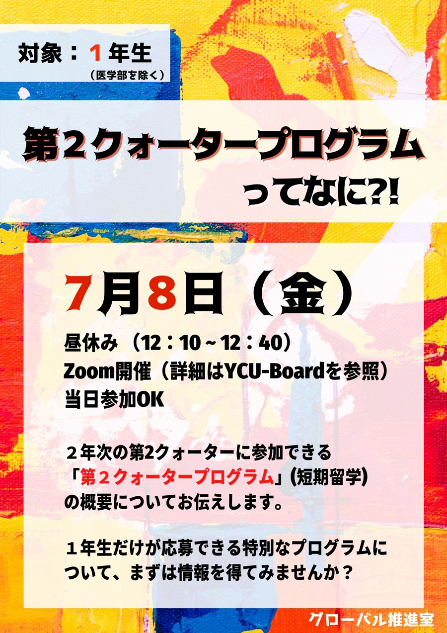 YCU留学プログラムの一つである「第2クォータープログラム」についてご存知ですか?