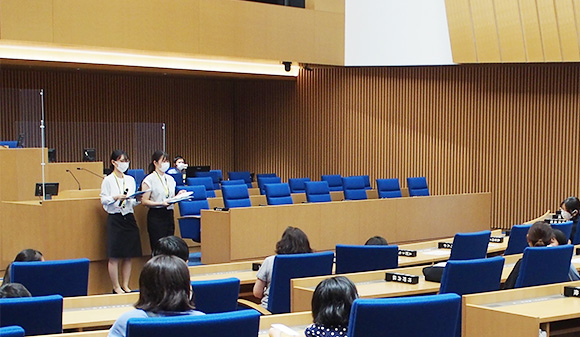 横浜市会議会局と横浜市立大学との間で実施する「横浜市会インターンシップ※」では、子ども向けイベントの実施及び政策の調査に携わる就業体験のほか、市会議員との意見交換等を通じて、議会・議員活動や市政に対する大学生の理解を深め、主権者意識や職業意識を向上させます。