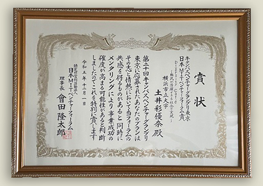 国際教養学部 国際教養学科 3年土井彩優奈さんが、学生起業家の登竜門として知られている学生ビジネスコンテストである、第20回CVG東京(キャンパスベンチャーグランプリ)でMIT賞を受賞しました。