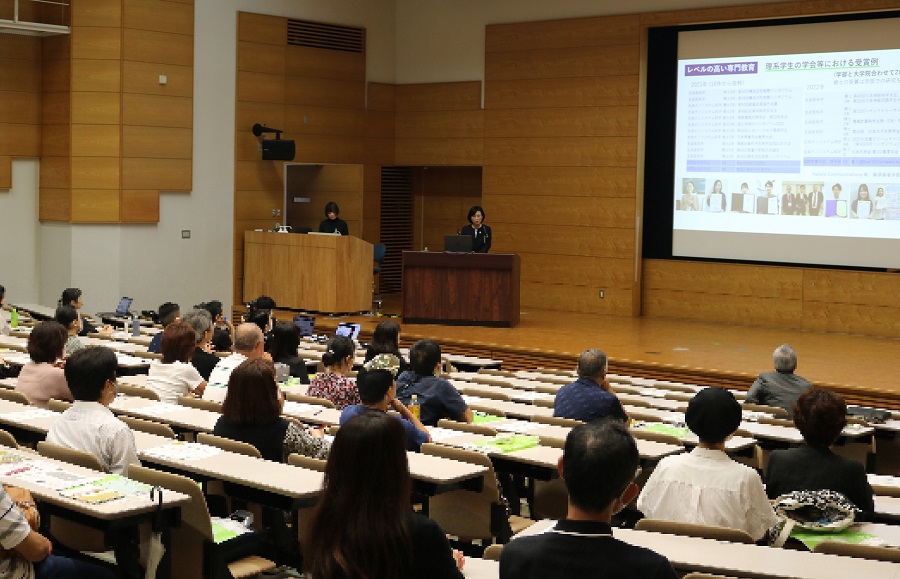 横浜市立大学学長の相原道子から、大学のミッションや、各学部における取組状況や特徴について紹介がありました。本学の教育内容は、卒業時に実施しているカリキュラム評価アンケートでの学生満足度も高く、コロナ禍を経ても上昇傾向にあり、昨年度の結果では、86.5%だったとの説明がありました。