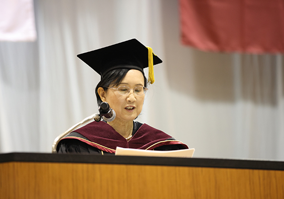 最後に、皆さんが本学で友人や教職員と共に、人生において忘れがたい、すばらしい時間を過ごされますことを祈念して、私の式辞と致します。