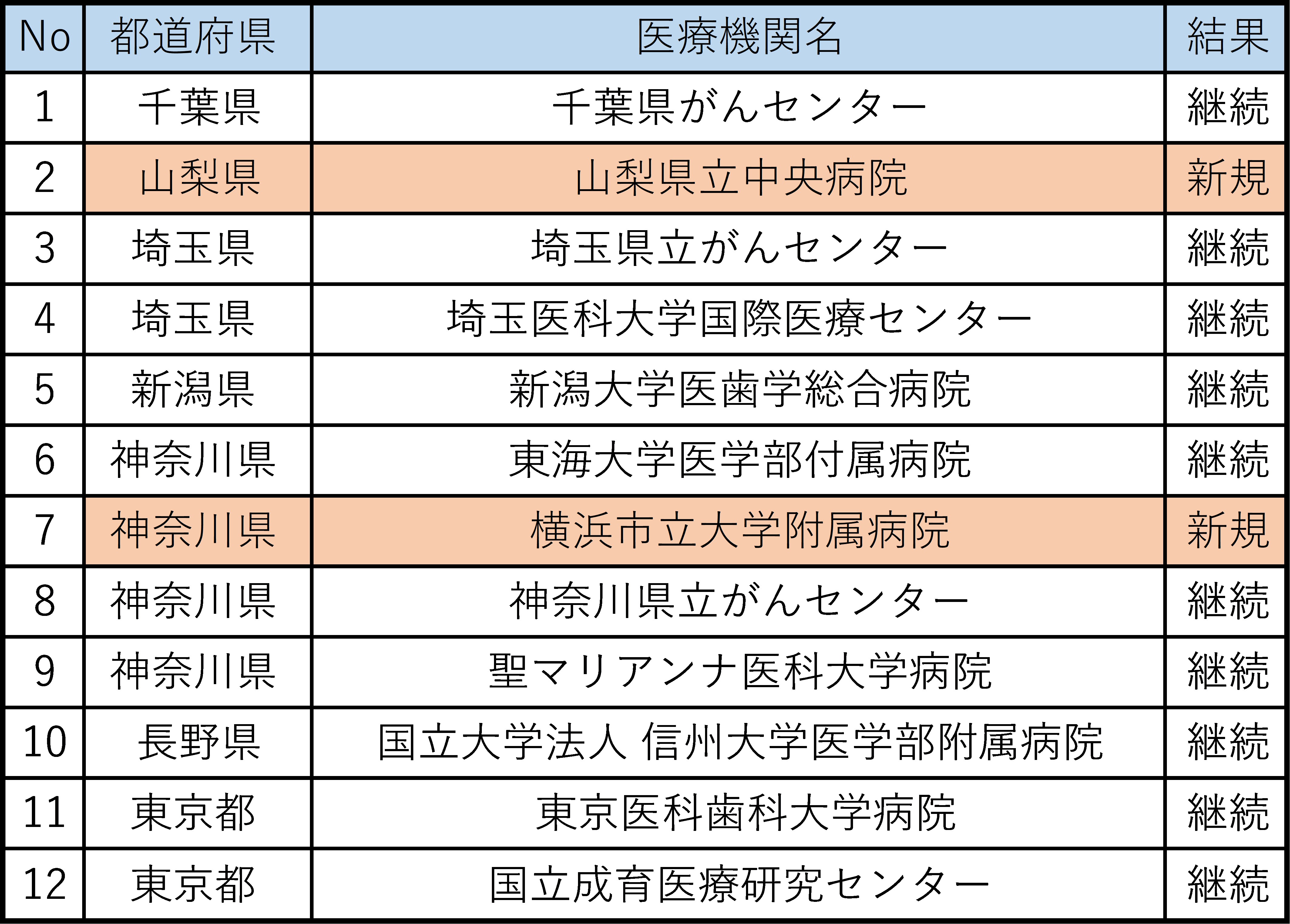 「がんゲノム医療拠点病院」は、全国・地域毎に総数が定められています。関東甲信越ブロックでは12施設を定数として、2019年から2022年までのがんゲノム医療の診療実績などを基に、選定が行われました。