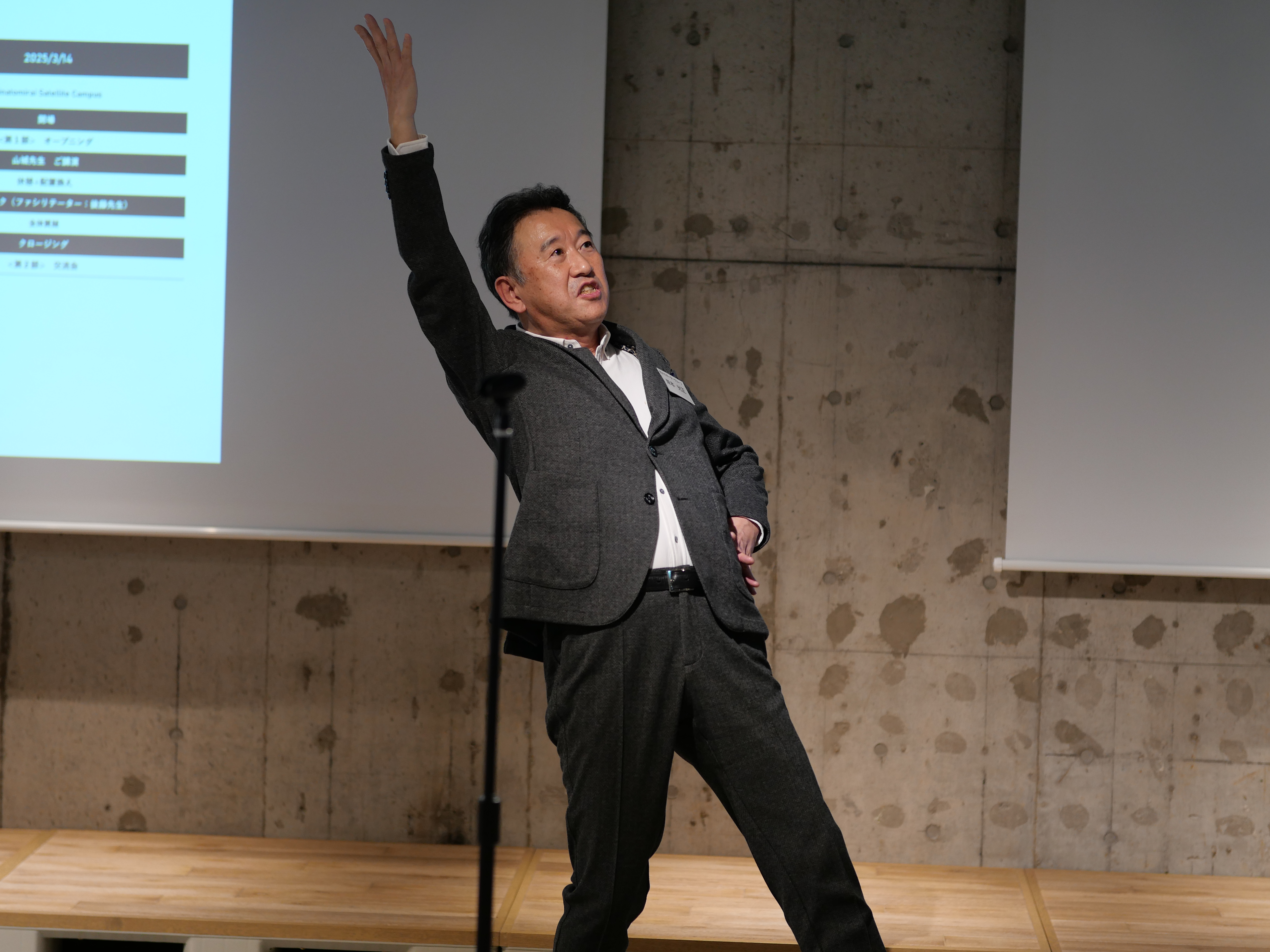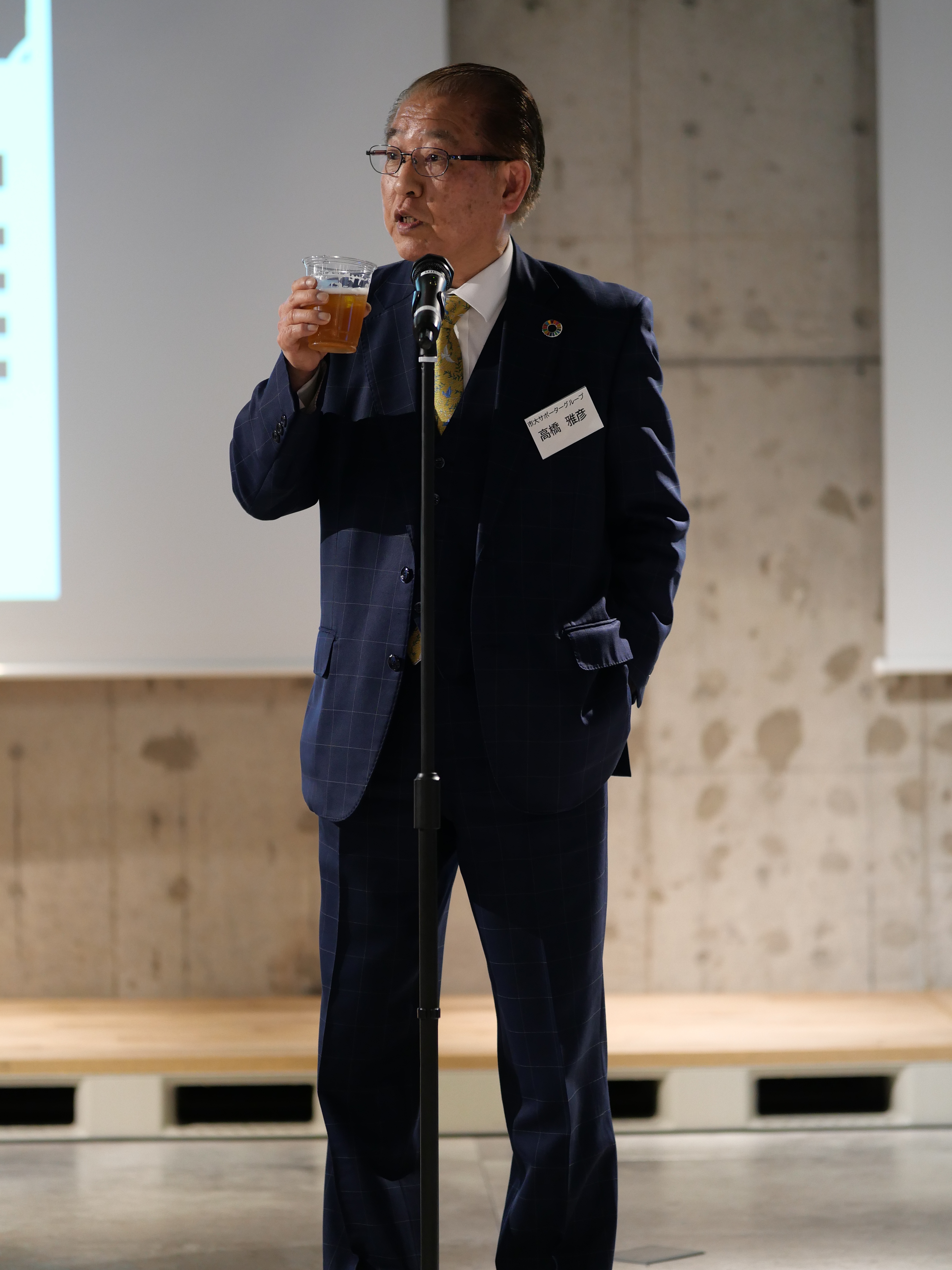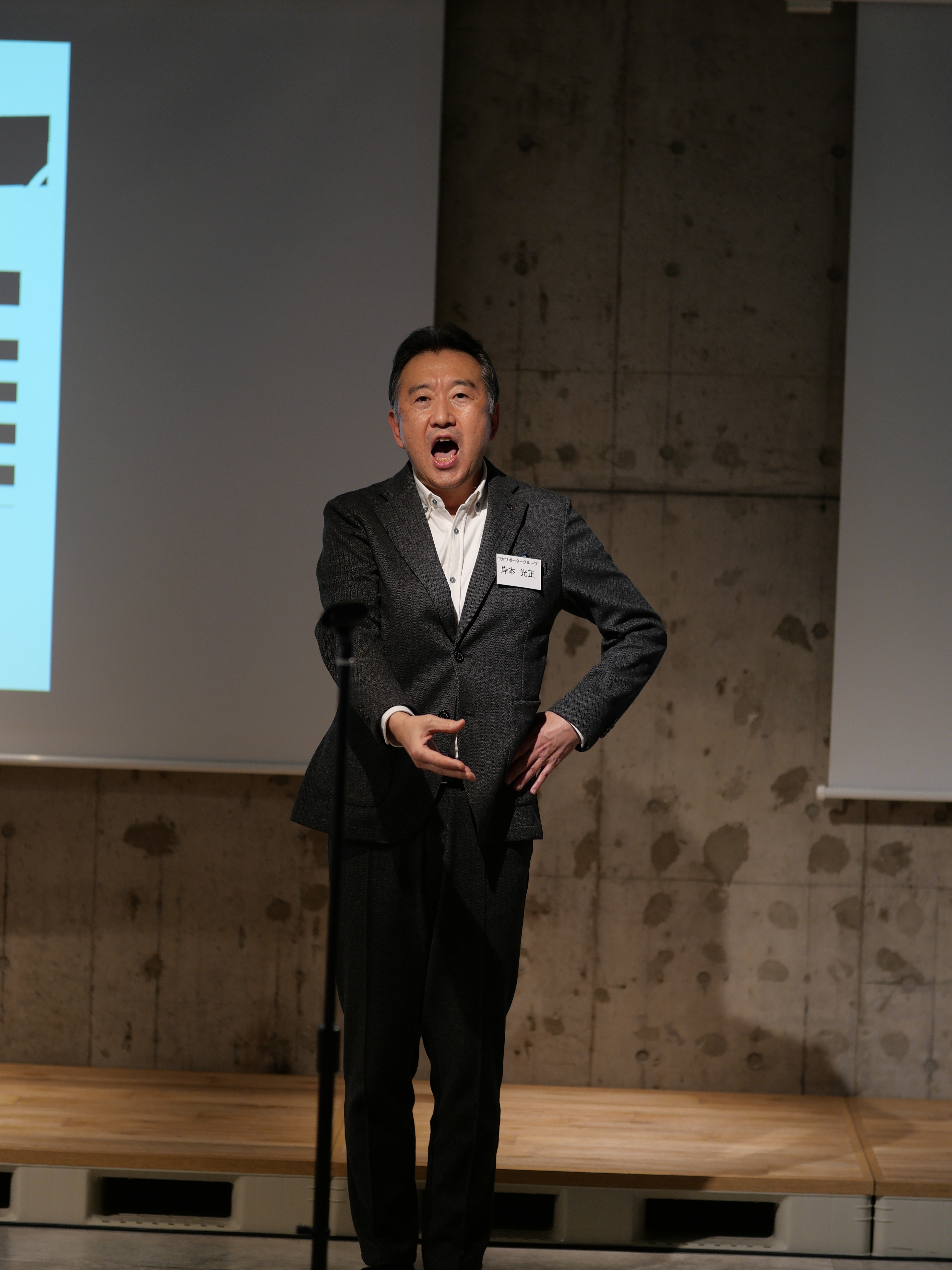 交流会の終盤には、STUDIO YCU恒例のエールを元応援団の岸本光正氏(本学 シニアアドバイザー、本学卒業生)が参加学生に向けて送ってくださいました。第4回 STUDIO YCUは2025年6月頃にみなとみらいサテライトキャンパスで開催予定です。次回も多くの学生と卒業生、教職員が参加し、横浜市立大学発でアントレプレナーシップとスタートアップの機運が高まっていくことを期待しています。