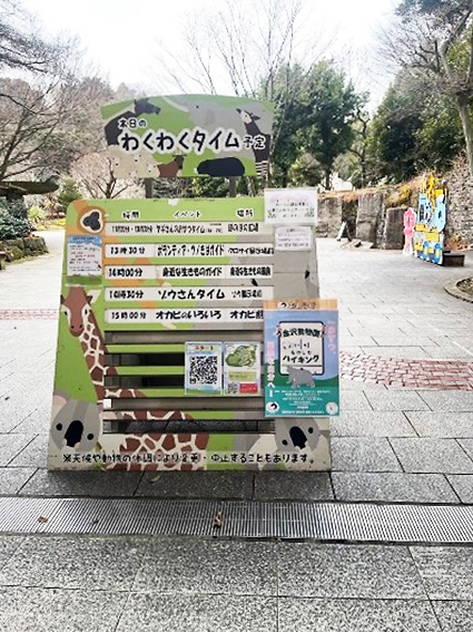 その結果、金沢動物園の「傾斜地が多い」という立地特性と動物園が期待する「動物を通じた環境教育の普及」を目的とした音声ガイドを組み込んだハイキングイベントを企画・実施するにいたりました。今回は動物園内での企画だったため、現地で来園者の目線を意識してポスターの掲示場所を決定し、参加賞を配布する作業にも取り組めたことは本プロジェクトに関わったゼミ生にとっても大変価値のある経験となりました。メンバーには、この経験を生かし、残りの学生生活でさらに課題解決能力に磨きを掛けてもらいたいと思います。