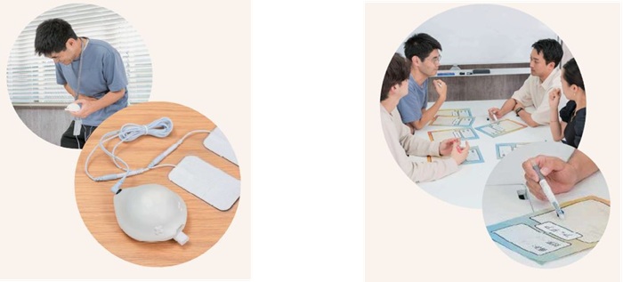 体験:生理痛体験装置「ピリオノイド」を装着し、生理期間中の身体的負担(下腹部に生じる内側に絞り込まれるような痛み・鈍痛など)を疑似体験