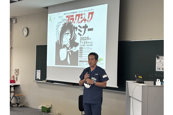 2025年7月26日(土)、福浦キャンパス シュミレーションセンターにて、小中学生を対象とした体験型医療セミナー「ブラックジャックセミナー」(担当講師 秋山 浩利 消化器外科准教授)を開催しました。