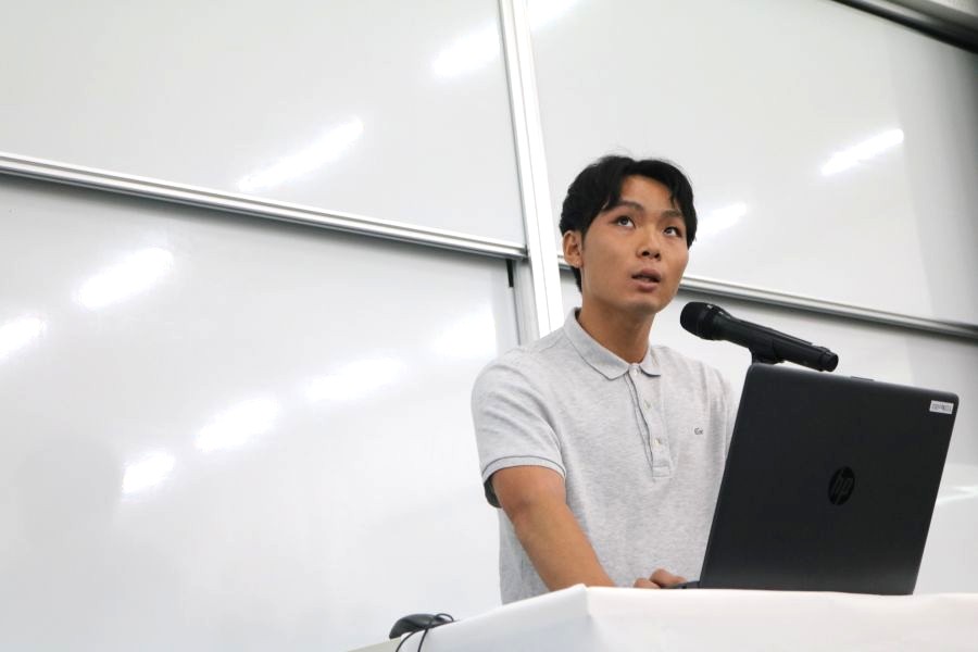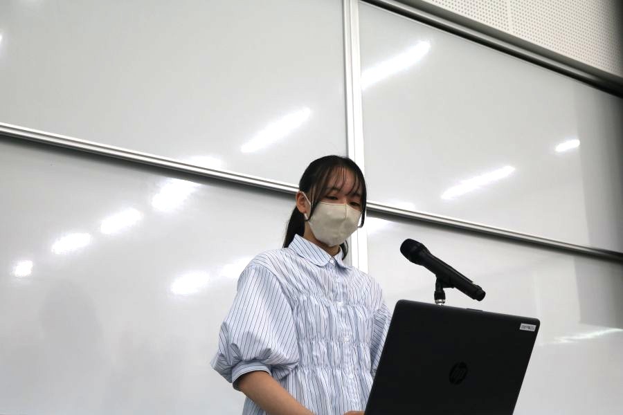 キャリア支援センターからは、国際商学部とデータサイエンス学部の学生2名が就職活動について発表を行いました。報告では、就活全体のスケジュールや1日の流れ、必要経費等、インターンシップや就職活動を通して学んだことが紹介されました。