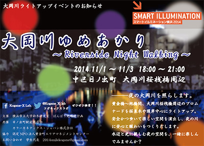 黄金町に拠点を持ち、地域の中で実践的に安全・安心のまちづくりに取り組む横浜市立大学国際総合科学部国際都市学系鈴木ゼミと、照明の専門家である「ぼんぼり光環境計画」が協働し、黄金橋から旭橋にかけ、大岡川の両岸を、LEDライト等を用いて桜並木や護岸を中心に幻想的に照らし出すイベントです。