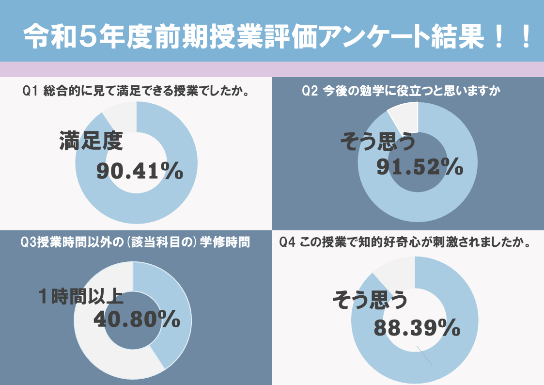 令和5年度前期の授業評価アンケートの集計が完了しましたので、アンケート結果を公開します。