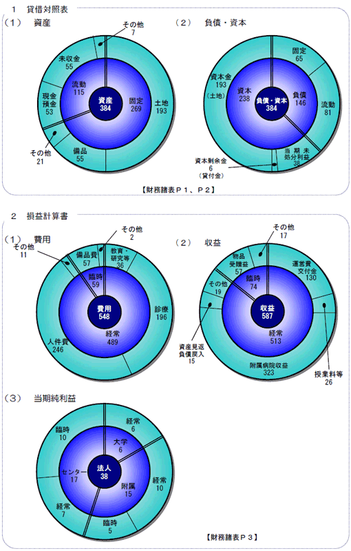 この財務諸表から、公立大学法人横浜市立大学における平成17年度の(1)財政状態、(2)運営状況、(3)資金収支の状況、(4)法人運営に関する住民等の負担額及び(5)利益処分の内容が明らかになります。