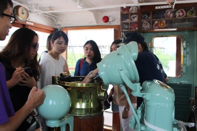 始めに、公益財団法人帆船日本丸記念財団 業務執行理事 総務部長の佐野様より、エリア開発の背景と魅力づくり、また帆船日本丸についての紹介説明がありました。その後、2グループに分かれ、帆船日本丸と横浜みなと博物館を見学しました。船上に暑い日差しが照り付ける中、ガイドさんの英語での説明を受け、みんな興味深そうに船の内部を見学し、博物館で横浜の歴史を学んでいました。