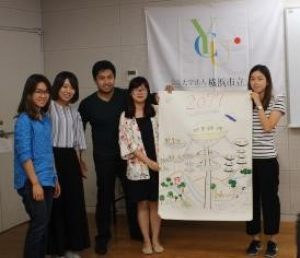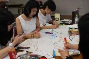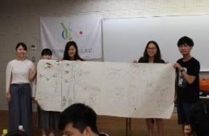 その後、グループワークとして20XX年に社会がどうなっているか、様々な問題に対して、どのようにクリエイティブに対応しているか、未来予想図を模造紙に描き、発表を行いました。