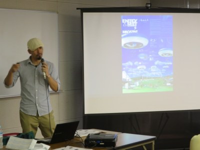 オオニシ准教授の自己紹介に続き、ご自身が経営するENERGY MEET社を起点として取り組む、数々の社会貢献活動の内容について説明がありました。