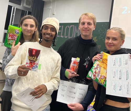 春と秋の年2回に分けて交換留学生の受入れを行っています。今回は、2023年9月から本学で学んでいる交換留学生のウェルカムパーティを開催!春を超える90名にご参加いただき、その分、ビンゴ大会は景品争奪戦に!フリートークの時間には打ち解けた姿も多くみられました。